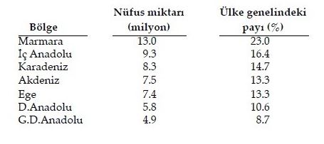 Türkiye'nin Bölgelere Göre Nüfus Dağılımı