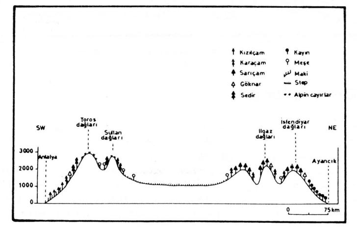 Bitki örtüsü maki'dir. Maki yaz kuraklığına dayanabilen; Mersin, Defne, Kocayemiş, Zeytin, Zakkum, Keçiboynuzu gibi kısa bodur ağaçlardan meydana gelen bir bitki topluluğudur.