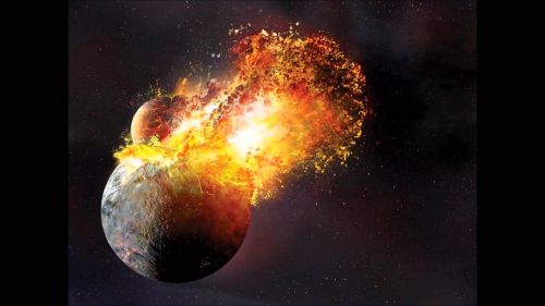 Güneş sisteminde, ilk başlarda Dünya ve Güneş'in çevresindeki yörüngelerde hareket eden gezegenimsi asteroitlerin, çarpışarak parçalanmaları sonucunda Ay oluştu. Bu kuramla ilgili bu güne kadar hiç bir ipucu bulunabilmiş değildir.