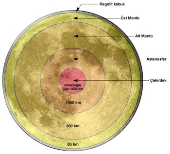 Ay'ın çekirdeğinin yarıçapının, 350 km veya daha az olduğu yönünde, deliller bulunmaktadır. Ay’ın çekirdeği, büyüklüğünün % 20 si kadarken; diğer karasal gezegenlerde bu oran, % 50 civarındadır.