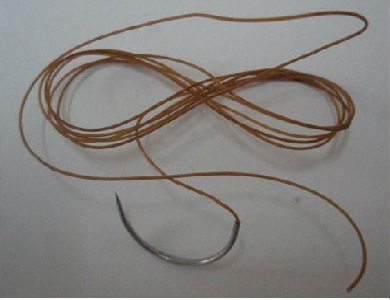 : Sığırın fleksör kirişinden elde edilen doğal, absorbe edilebilen, bükümlü, multifilament bir malzemedir. Görünüş olarak cerrahi katgüte benzer. Düz veya kromik olabilir. Özellikle göz cerrahisinde bu dikiş malzemeleri asgari doku tepkisi yaratır. Absorbe edilme yeknesaklığına ve iyi düğüm atma yeteneğine sahiptir