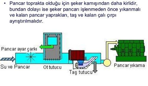 Ağustos ayı sonlarında hasadına başlanıp işlenmek üzere peyderpey fabrikalara getirilen pancarlar tartılarak ön bir temizleme işleminden geçirilerek toprak ve çamurlarından büyük ölçüde ayrıldıktan sonra silolara alınır. Pancarın silolardan fabrikaya ulaşması kanallar vasıtasıyla yapılır. Pancarlar kanallardan basınçlı suyla sevk edilirken toprağından tamamen temizlenmesi yıkama tesislerinden geçirilirler.